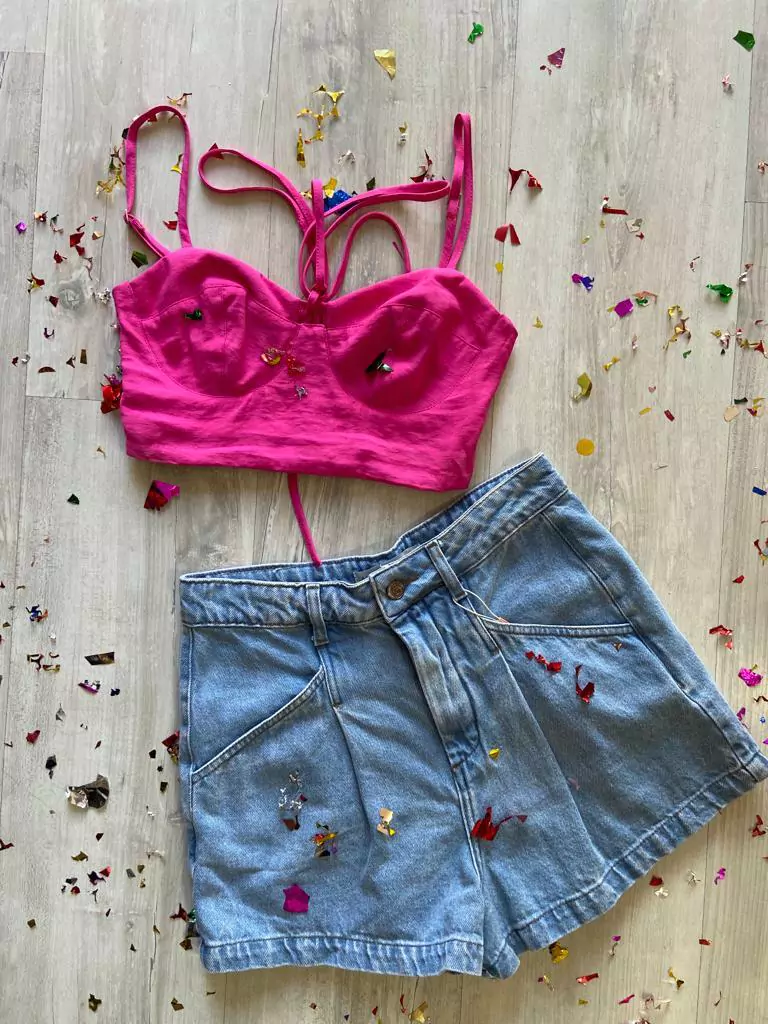 Cropped ste em tecido Tencel com alcinha com regulagem. Composição: 100% Tencel Tecido: crepe. 92% poliéster e 8% elastano. Sugestão de tamanhos: Se você usa 36-38, sugerimos o tamanho P. Busto 88-90, quadril 98-100, cintura 68-70 Se você usa 38-40, sugerimos o tamanho M. Busto 92-94, quadril 102-104, cintura 72-76 Se você usa 40-42, sugerimos o tamanho G. Busto 96-100, quadril 108-112, cintura 76-80 Medidas aproximadas: Referência: Bia veste 40-42 e usou o M Medidas Bia: Altura: 1,68 cm. Quadril: 106 cm. Busto: 88 cm. Cintura: 65 cm. Instruções de uso & lavagem: Verifique a instrução de lavagem que fica na etiqueta. Esta peça não pode ser lavada em máquina sob nenhuma hipótese, nem no ciclo gentil. Este tecido deve ser lavado exclusivamente a mão, caso contrário, por ser delicado, as costuras podem ser danificadas. Não torcer, não bater e secar à sombra. Deste forma, sua peça será melhor conservada, bem como a taxa de encolhimento será menor. Encolhimento: Devido às propriedades do tecido, após a primeira lavagem, há uma taxa de encolhimento de 5 a 10% da peça (se lavada e secada corretamente). Dica: lave sua peça antes de qualquer ajuste, para já considerar a possibilidade de uma taxa de encolhimento. Cor: As fotos no corpo possuem leve edição para ressaltar as cores, portanto podem apresentar uma pequena variação de cor, considerando a calibragem de cor de cada monitor/celular.