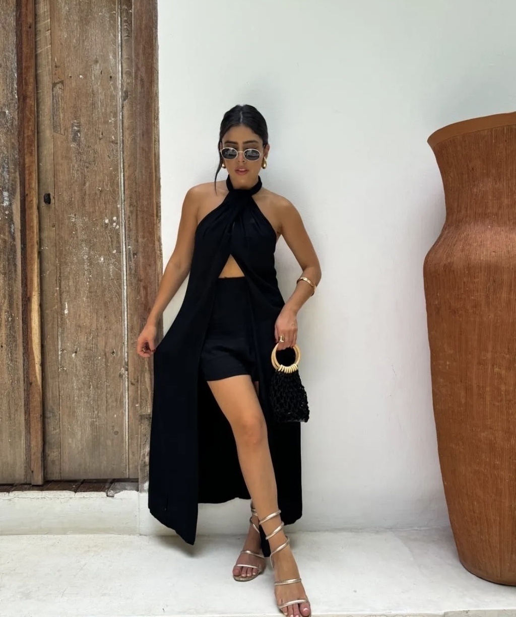 Descubra o charme do Macaquinho Ibiza COD 35041, uma peça única que une estilo e conforto. Feito em viscose, com frente única e amarração no pescoço, ele possui shorts aparentes, bolsos laterais e zíper nas costas. Ideal para quem busca praticidade e elegância em uma só peça!