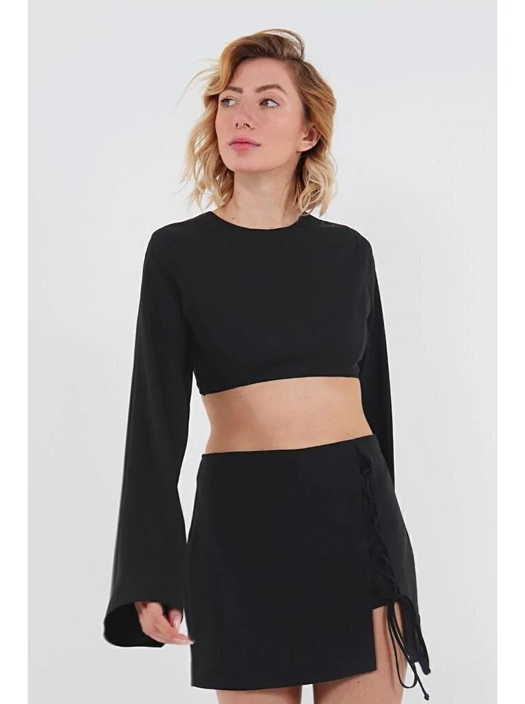 SHORT SAIA COM FENDA E TIRAS COMPOSIÇÃO : 95% poliéster e 5 % elastano